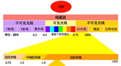 光線是大家熟悉的。光線是什么?光線就是可見光,是人眼能夠感受的電磁波。可見光的波長為:0.38—0.78微米。比0.38微米短的電磁波和比0.78微米長的電磁波,人眼都無法感受。比0.38微米短的電磁波位于可見光光譜紫色以外,稱為紫外線,比0.78微米長的電磁波位于可見光光譜紅色以外,稱為紅外線。
