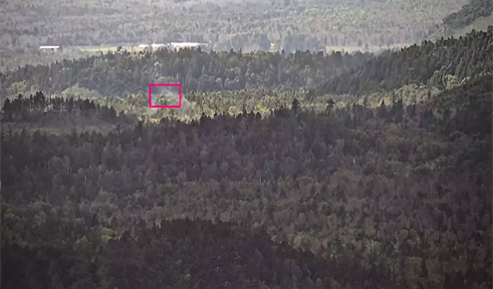 云臺實現了煙火的實時動態檢測,相對后端檢測的形式,提升了檢測效率,發現目標更快速更準確,規避由于遠距離傳輸圖像延時、丟失帶來的漏檢。同時還可設置煙火屏蔽區域以及利用可見光進行火情的清晰確認,利用可見光的同軸定位功能,無偏離同步定位查看細節,同時,可見光可自動調整倍率快速聯動跟蹤,確認火點。實測中,熱成像火點后,可見光立即同步調整與變焦,將火點區域置于畫面中心。