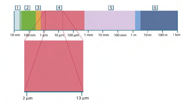 紅外光波段位于可見光以外,比紅色光波長更長,目前以8~12微米的熱紅外應用最為廣泛.