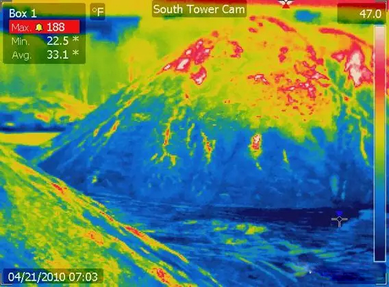 當煤發生自燃時,煤層表面的溫度升高,但肉眼并不能觀察到。紅外熱像儀采用640*480探測器,其像素是常規320*240熱像儀的4倍,距離是其2倍。所以,在探測煤層溫度時,可以在很遠的距離就可檢測到煤層表面的溫度,以圖像的形式呈現出來,在熱像儀顯示屏上可以清晰的看到高溫和低溫用不同的顏色標示,顯示的高溫區就是隱性火區,在發現后即可采取相應措施以防治煤層自燃。