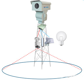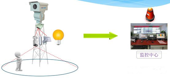 一旦有人靠近、攀爬基塔,告警系統(tǒng)啟動(dòng),安保攝像機(jī)錄像回傳至監(jiān)控中心并實(shí)時(shí)錄像,同時(shí),喇叭現(xiàn)場播放語音警示。監(jiān)控中心接收到報(bào)警信號后,立即通過語音對講系統(tǒng)對現(xiàn)場喊話。